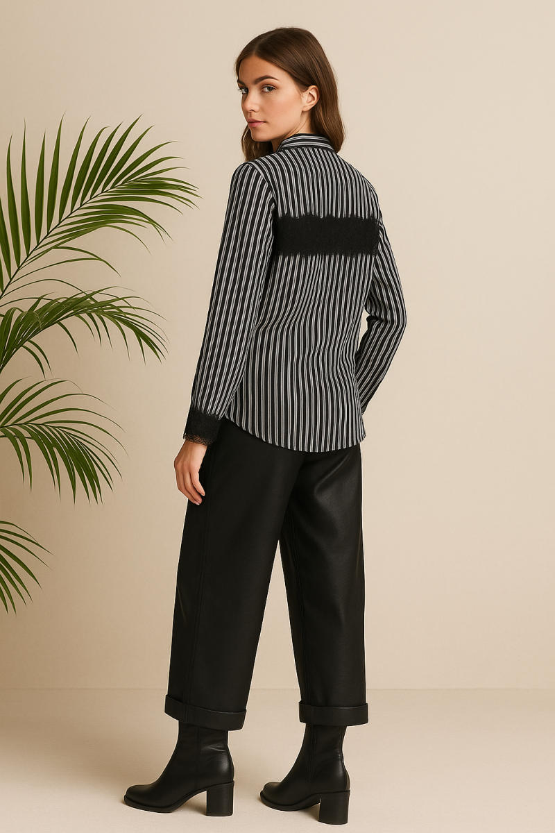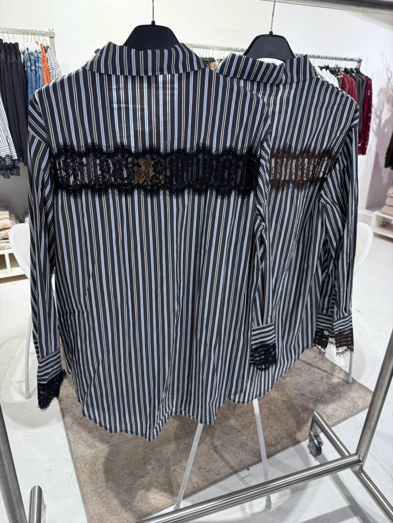 Blouse in 1 maat , katoen met stretch met kant detail langs de mouwen en op de achterkant