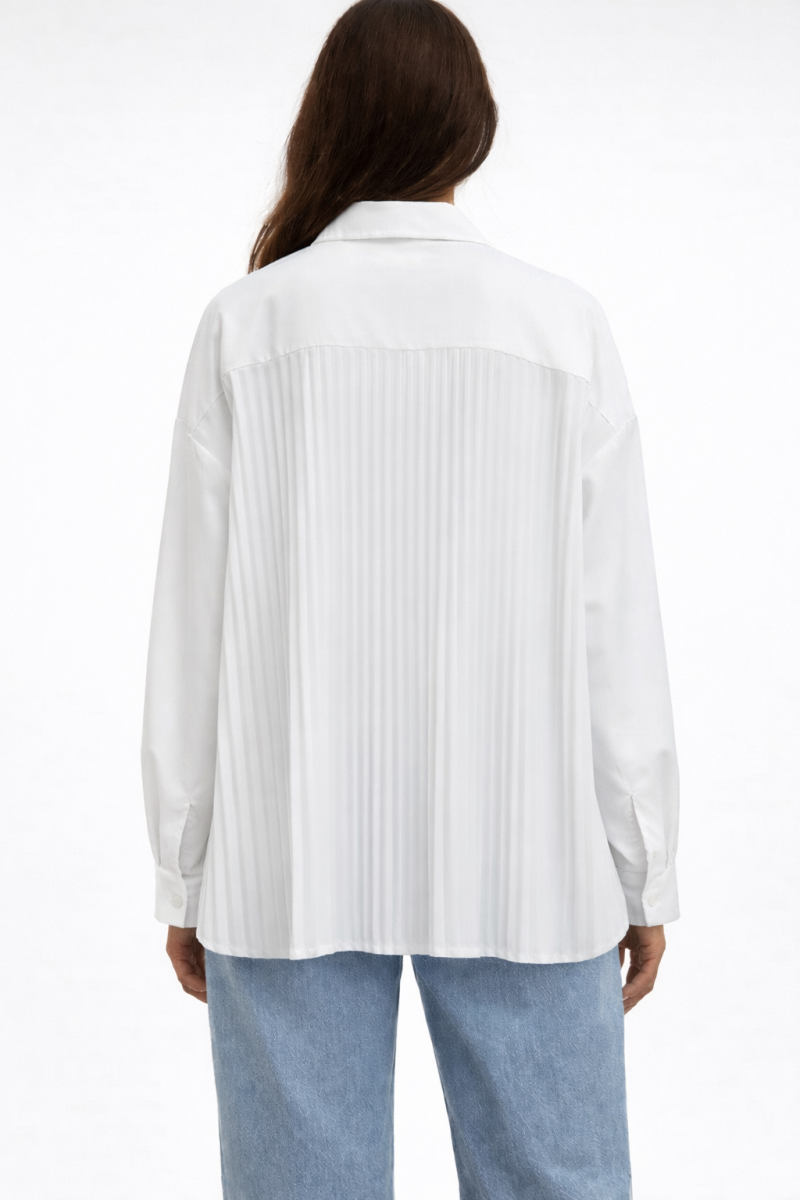 Blouse in katoen , met plisse detail op de rug .